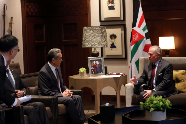 当地时间2025年12月15日,约旦国王阿卜杜拉二世在安曼会见中共中央政治局委员、外交部长王毅。